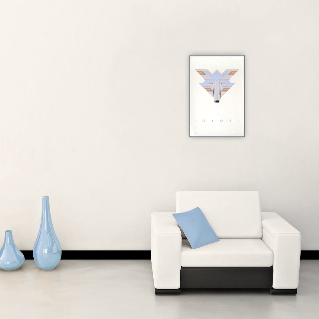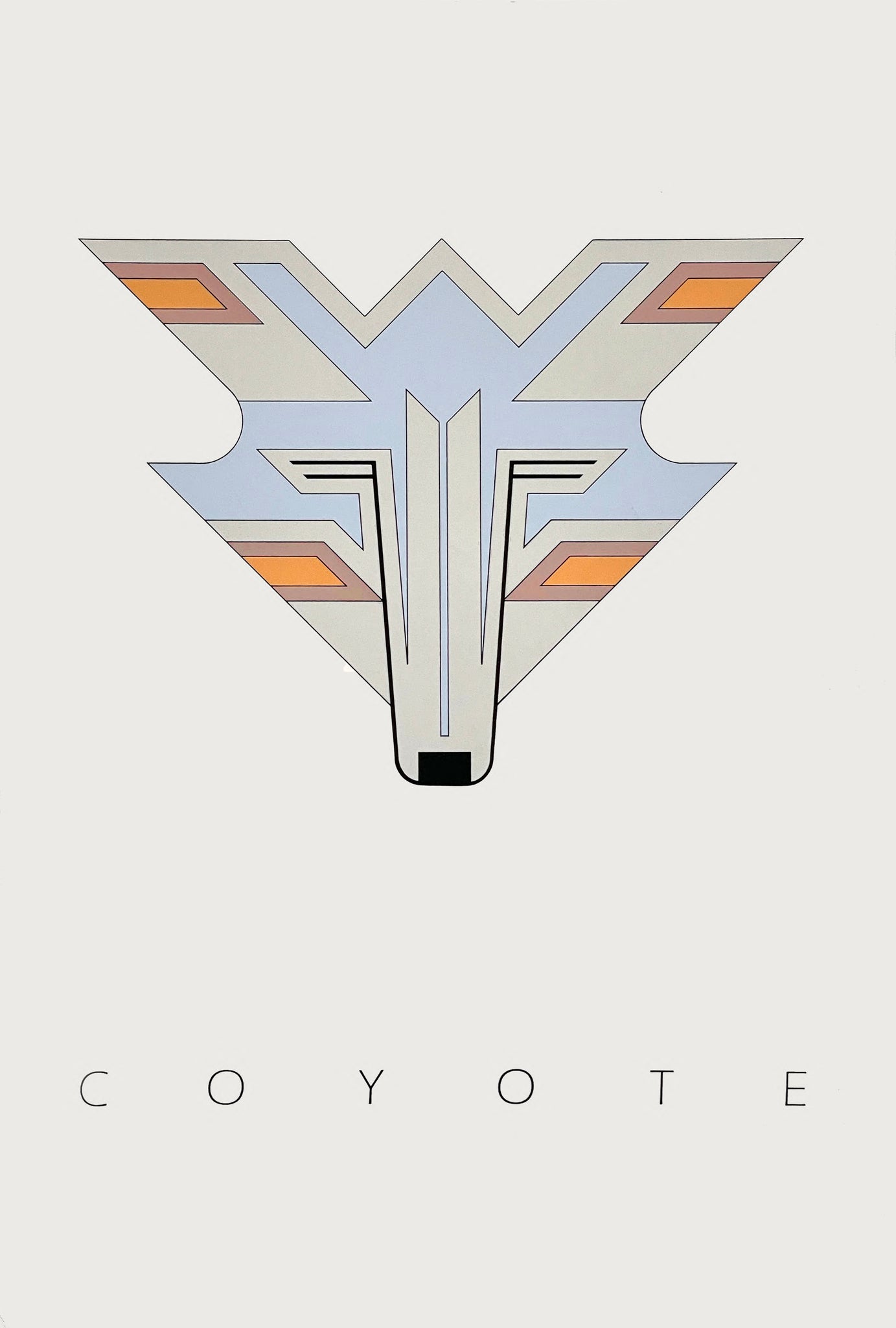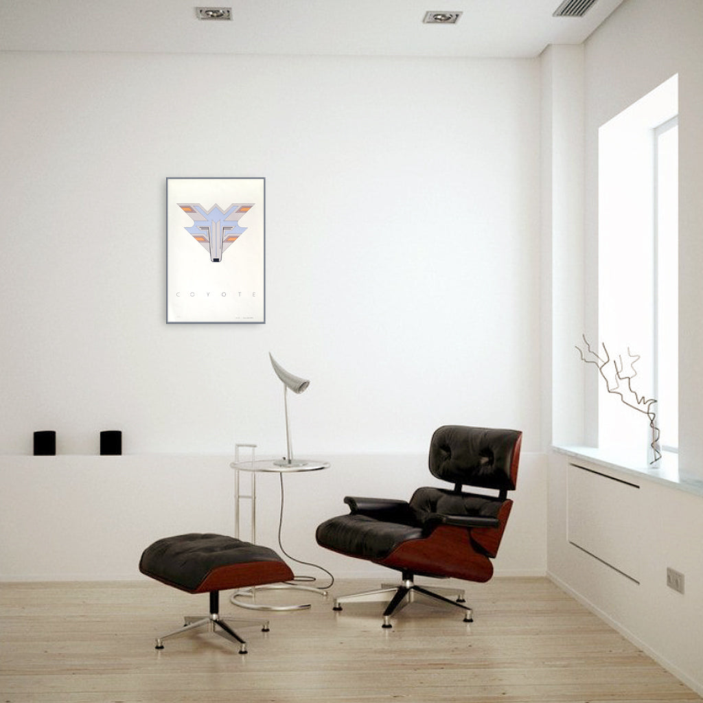 Coyote is an original serigraph print in an edition of 2340 (only 8 are left), It was made in 1979. It measures 20"x30" Coyotes are found is found in the prairies, plains and mountains of North America. I created a series of animal original serigraphs prints using geometry and the inspiration of constructivist art and modernist design. I wanted to present the American west in a contemporary style. Production art was hand-drawn or cut by the artist. — This print is NOT FRAMED.