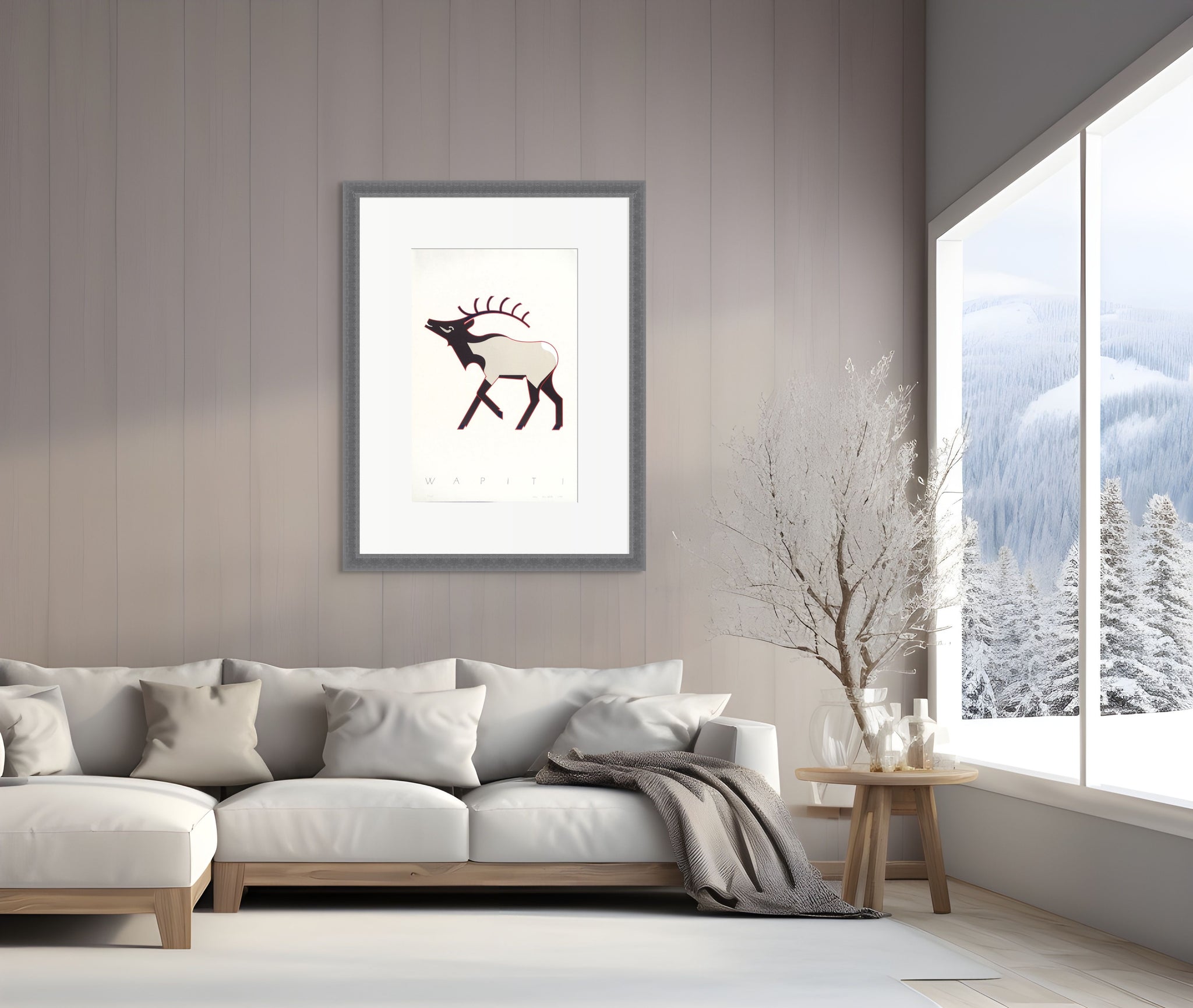 Wapiti is an original serigraph print in an edition of 250 (only 11 are left), It was made in 1979. It measures 20"x30" Elk are found is found in the prairies, plains and mountains of North America. Wapiti derives from the Shawnee language, meaning "white rump". I created a series of animal original serigraphs prints using geometry and the inspiration of constructivist art and modernist design. I wanted to present the American west in a contemporary style. Production art was hand-drawn or cut by the artist. — This print is NOT FRAMED.